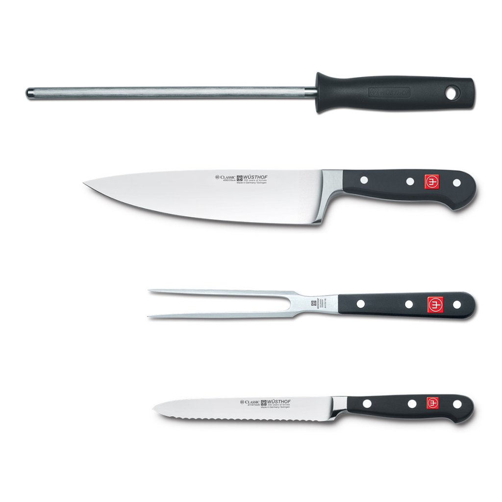 De messenserie Classic toont perfect de messenmakerskunst van het merk WÜSTHOF. Het is de meest populaire serie in de WÜSTHOF reeks, niet alleen vanwege het hoge gebruikscomfort. Dit zijn klassieke messen met geklonken handvatten, waarvan de lemmeten zijn gesmeed uit één stuk gelegeerd roestvrij staal X50CrMoV15. Dankzij het gebruik van hoogwaardige materialen en precisieslijpen hebben ze een hoge en langdurige scherpte. De zeer functionele Classic messen zijn met grote zorg gemaakt tot in het kleinste detail. Precies zoals verwacht van Solingen messen. Na het eerste gebruik wil je geen ander mes meer..