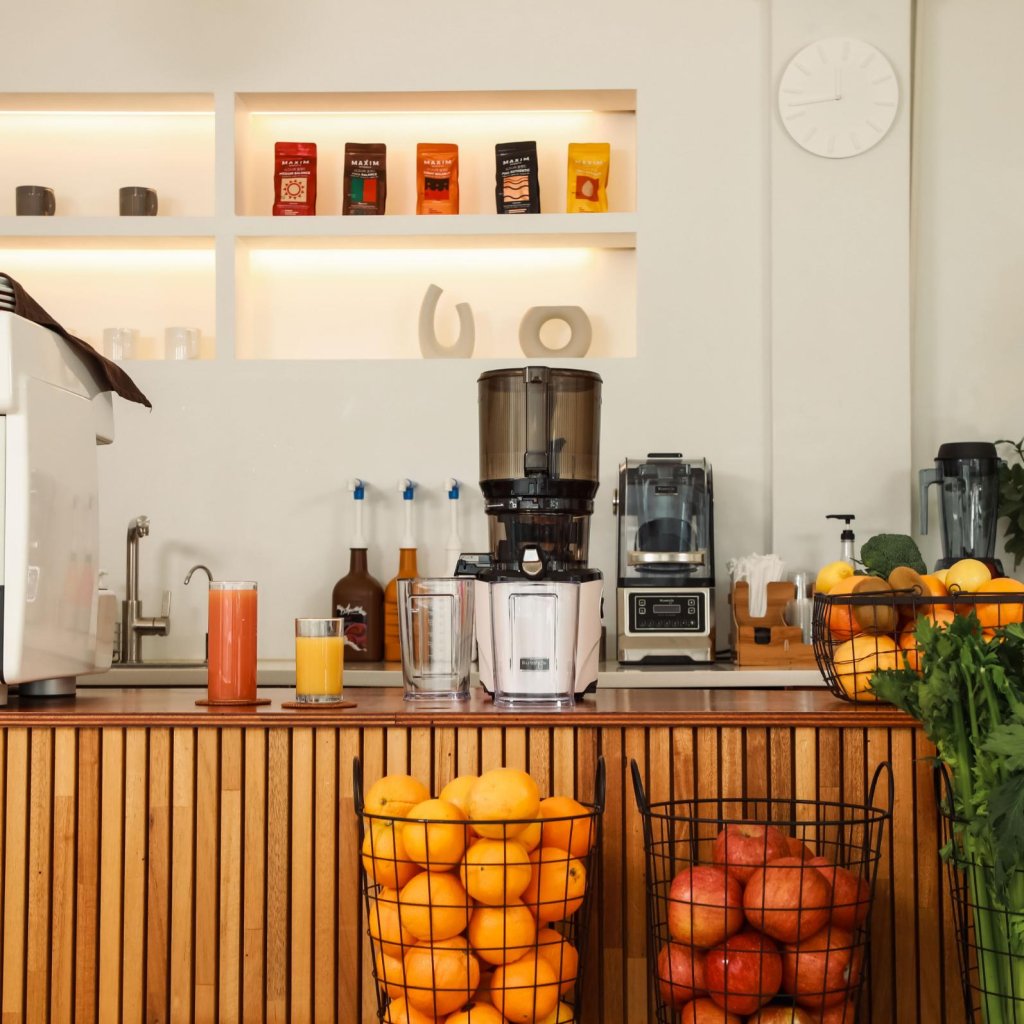 - Het snijden in de perskamer resulteert in minder oxidatie en minimaliseert het bruin worden van het sap, waardoor de drank meer voedingsstoffen behoudt en langer vers blijft.