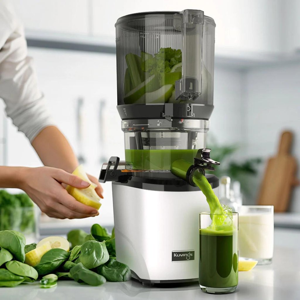 - De Kuvings sapcentrifuge AUTO10S is een modern apparaat waarmee u gemakkelijk sap kunt persen uit ingevoerd fruit en groenten, zonder dat u de ingrediënten vooraf hoeft te snijden.