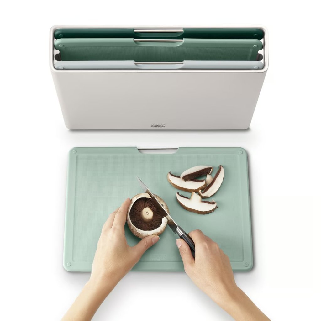 - roestvrijstalen handgrepen vergemakkelijken het hanteren van de snijplanken