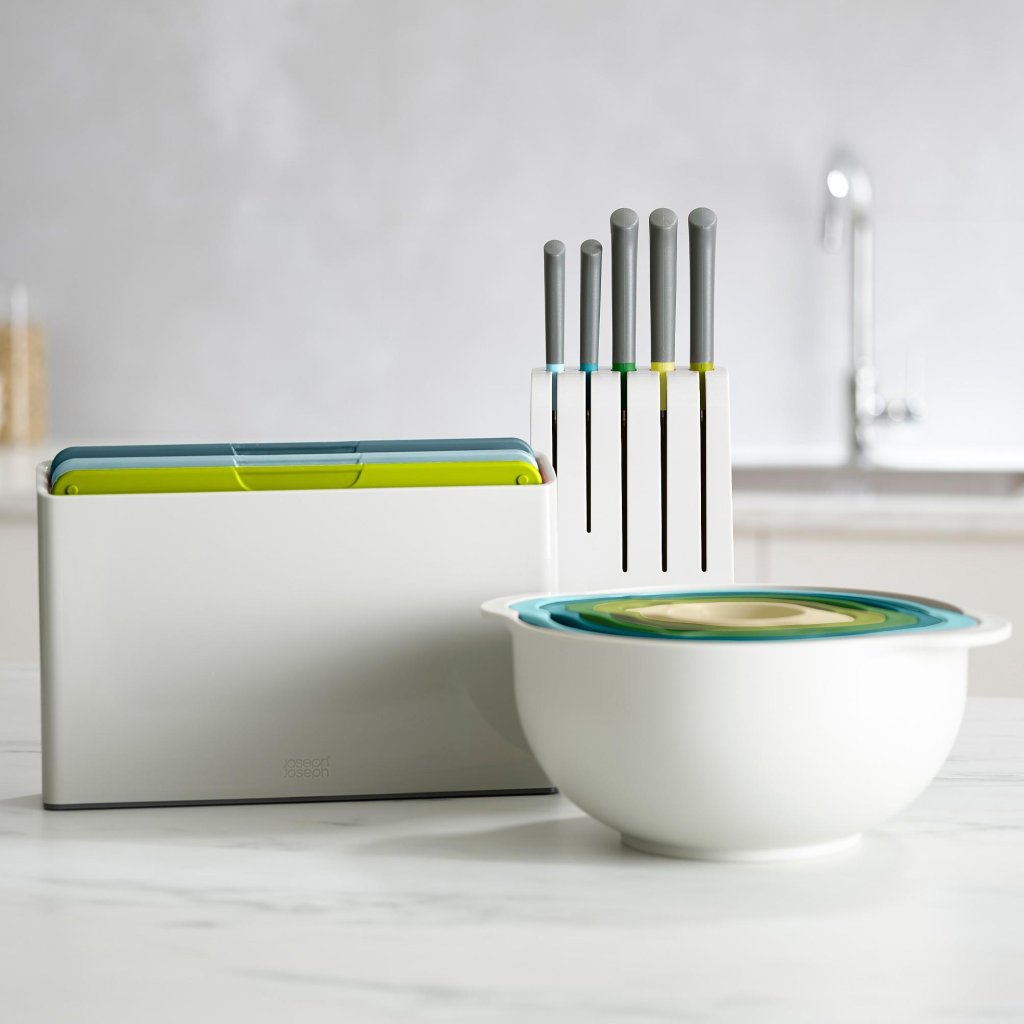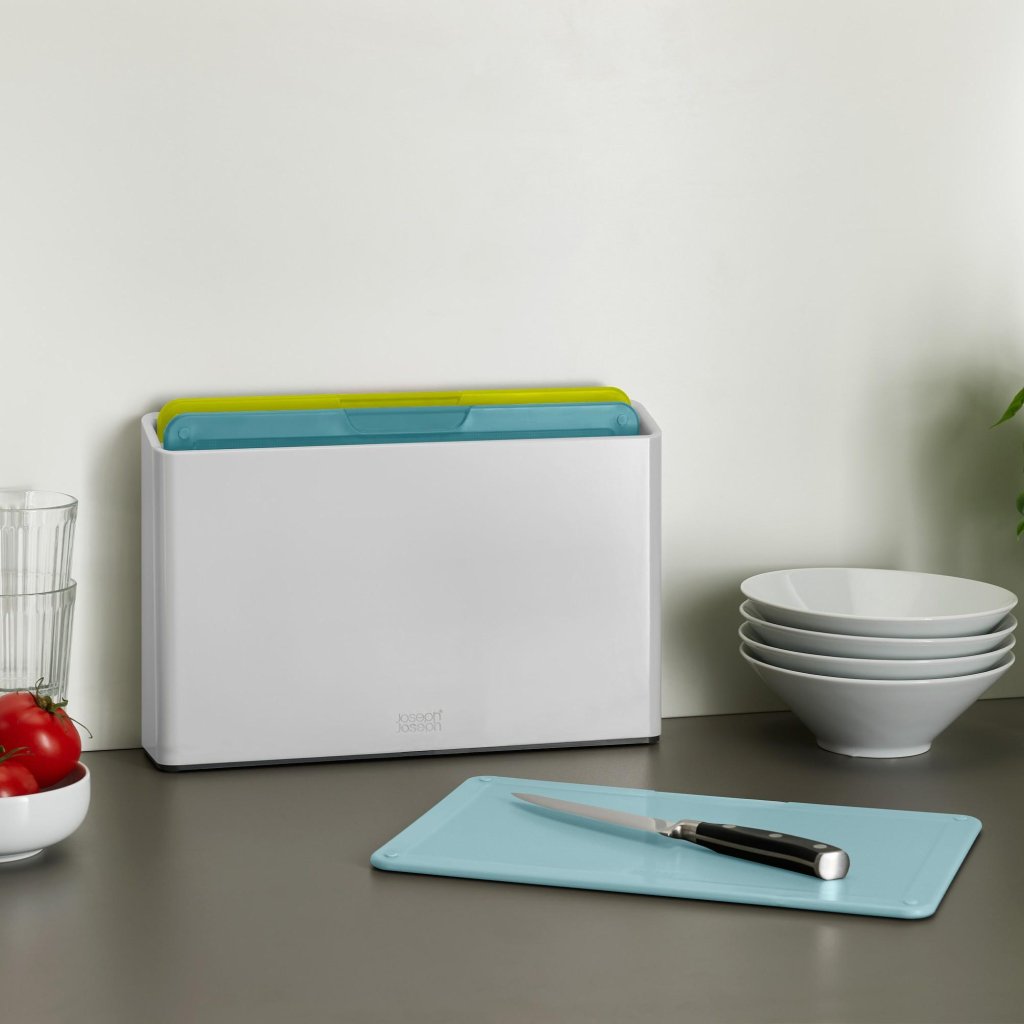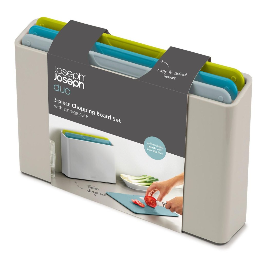 - De Joseph Joseph DUO OPAL snijplankenset met standaard is een praktische oplossing voor hygiënisch gescheiden bereiding van ingrediënten in de dagelijkse thuiskeuken.