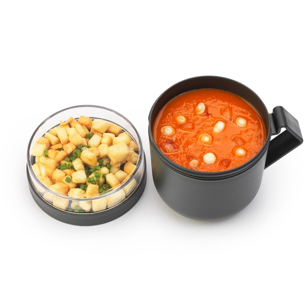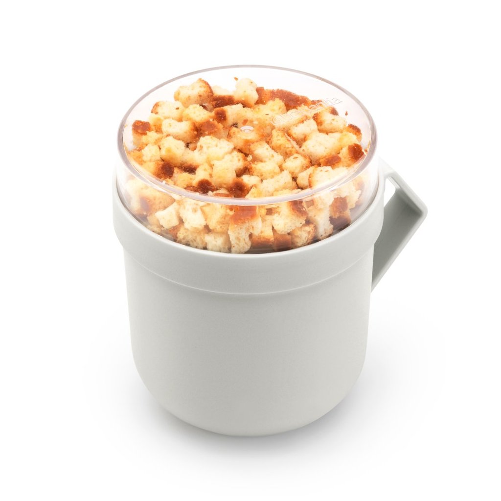 - herbruikbare reissoeppot met opschroefbare container voor toppings