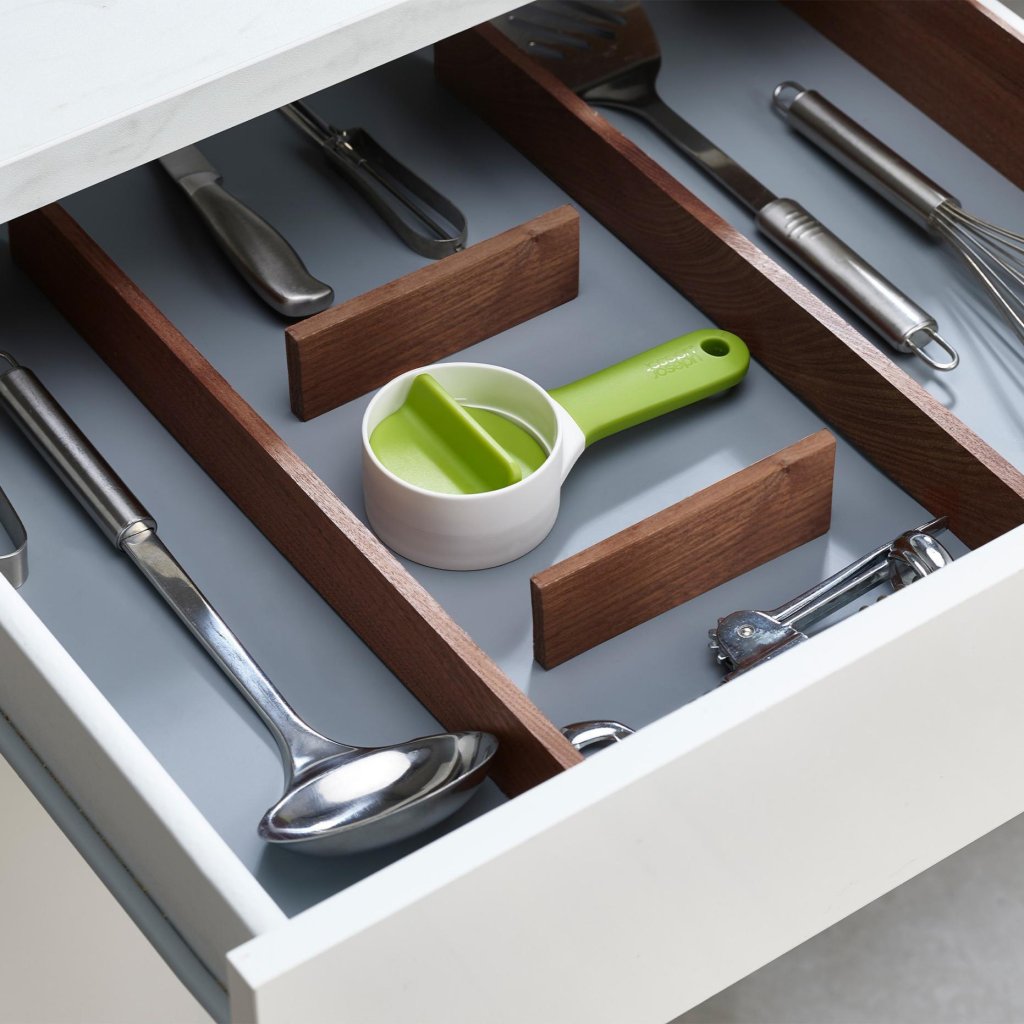 - Dankzij het kleine formaat past het gemakkelijk in een keukenlade of een kleinere kast.
