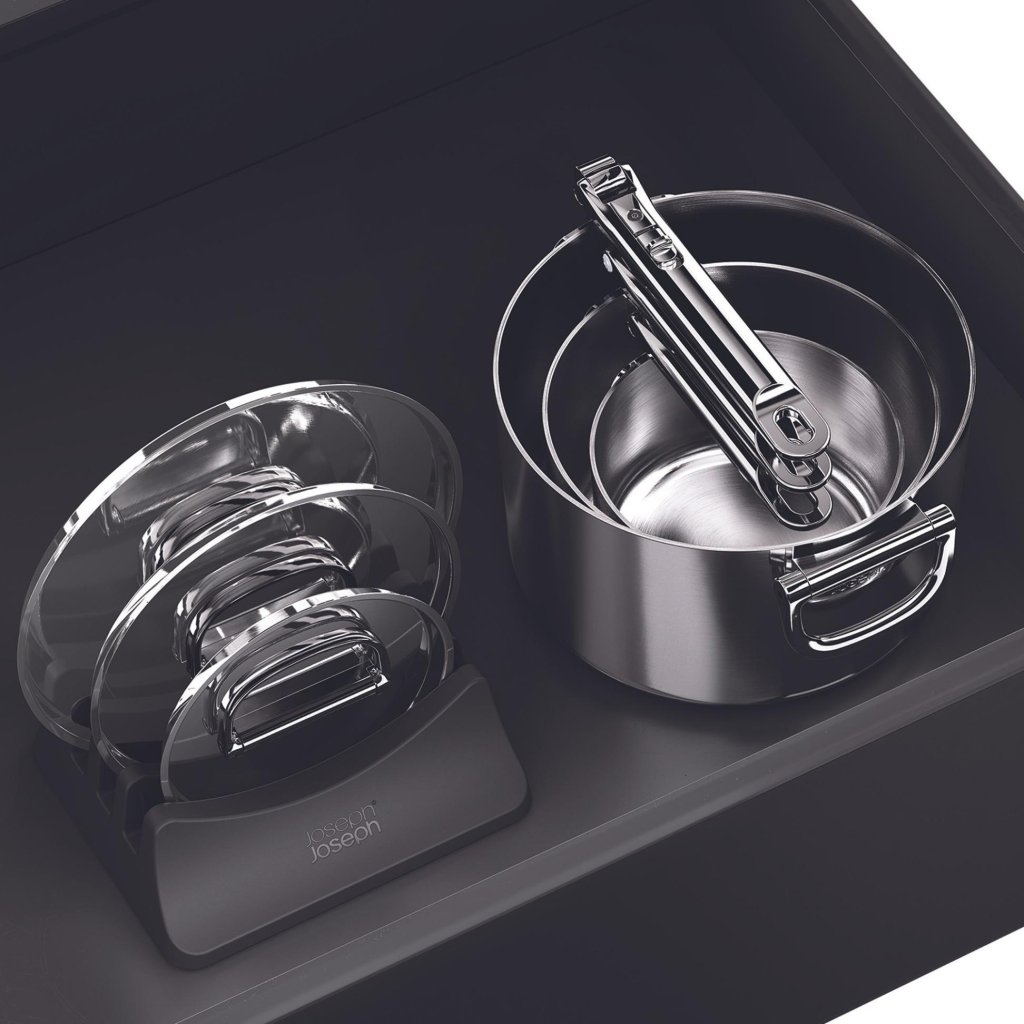 - De premium kookset Joseph Joseph SPACE transformeert de organisatie in uw keuken dankzij een geavanceerd stapelsysteem en een professionele drielaagse constructie.