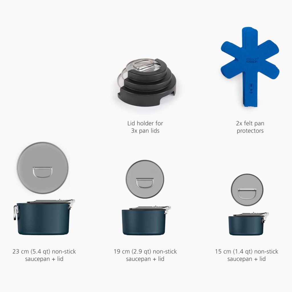 - De SPACE pannen set in Midnight Blue is de ideale oplossing voor het dagelijks koken van sauzen, bijgerechten, soepen en grotere porties.