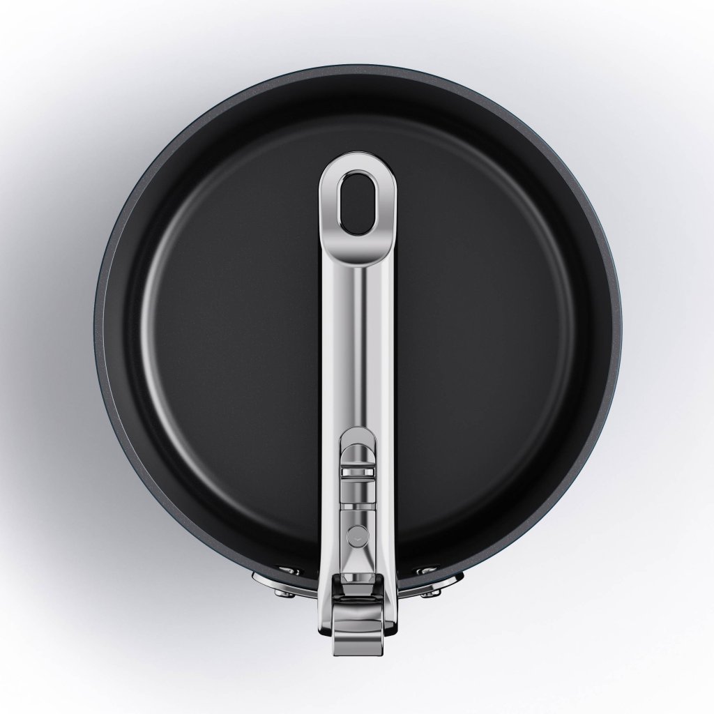 - Dankzij het vouwmechanisme kan de steelpan eenvoudig met ander keukengerei worden gestapeld, waardoor een overzichtelijke en compacte opbergruimte in keukenkasten ontstaat.