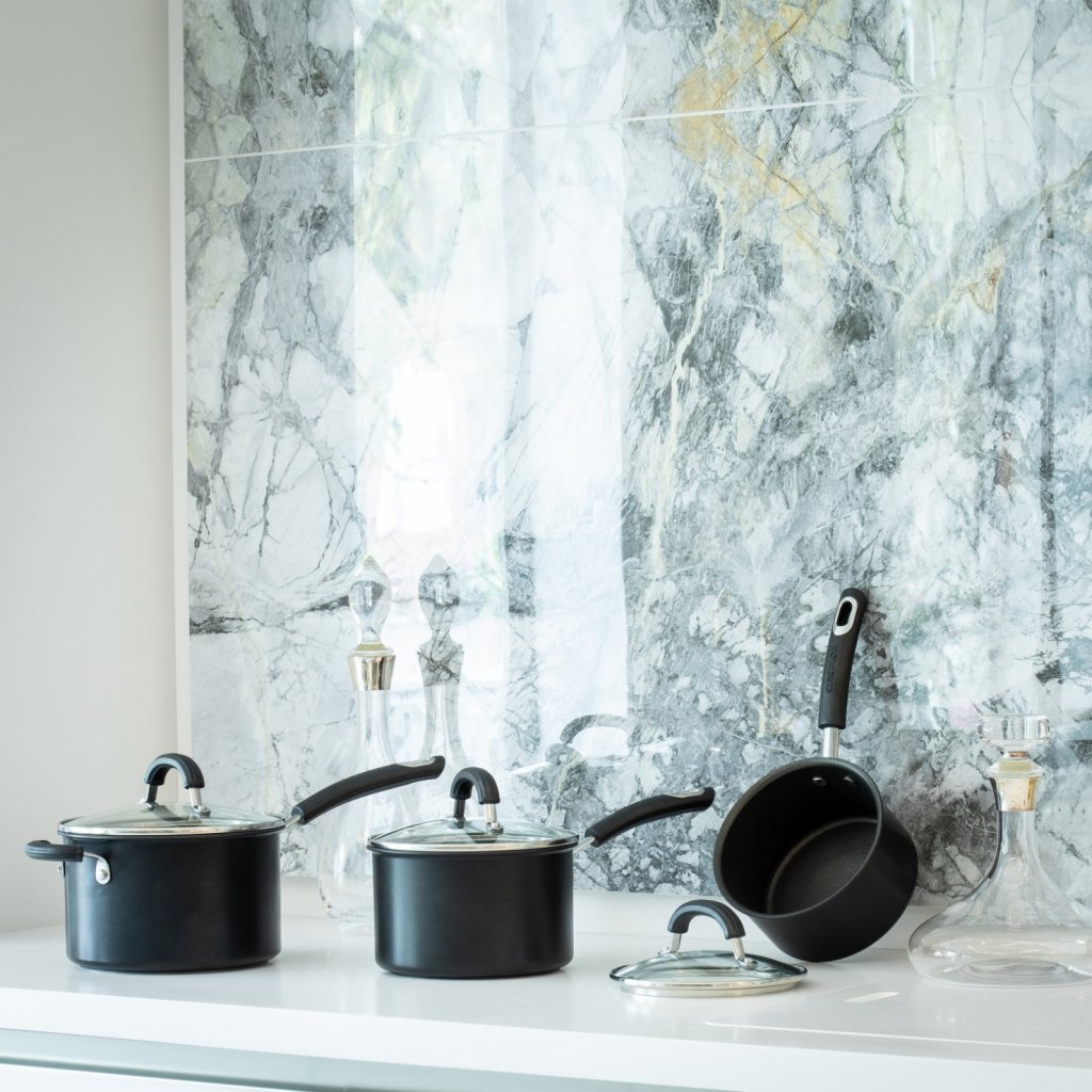 - praktische schenktuit aan beide zijden voor het gemakkelijk schenken van vloeistoffen zonder onnodig morsen of druipen langs de zijkanten van de pan