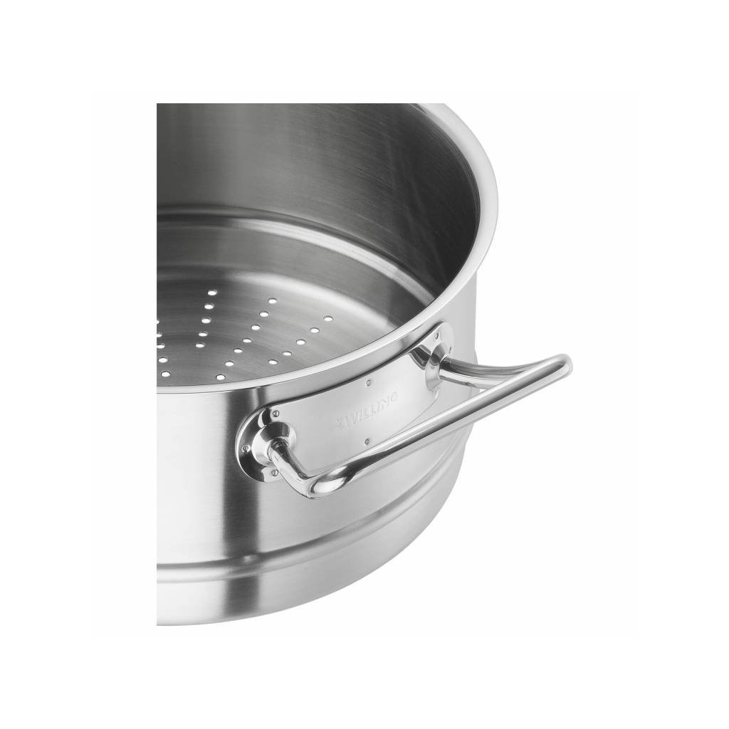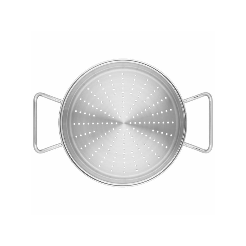 De Zwilling Pro roestvrijstalen stoominzet is geschikt voor potten uit dezelfde collectie met een diameter van 24 cm. Doe het gewoon in een pan met water en je kunt beginnen met koken. Koken met een geperforeerde inzet is ideaal voor een gezonde manier om voedsel te stomen. De ingrediënten worden op een zachtere manier gekookt, waardoor hun kleur, sterkere smaak en vooral de voedingsstoffen die anders in grotere mate in het water zouden uitlogen, behouden blijven.