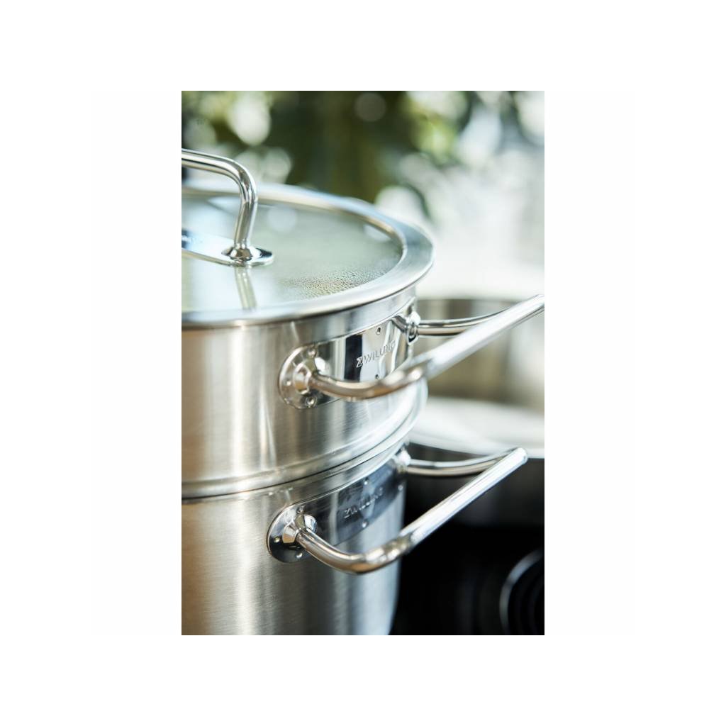 Voor de productie van het stoominzetstuk is gebruik gemaakt van mat roestvrij staal, dat krasbestendig is. Absoluut tijdloos, elegant design tot in het kleinste detail uitgedacht. De grote warmtegeïsoleerde handgrepen van gietstaal zorgen voor een veilig gebruik tijdens het koken. Vaatwasserbestendig en duurzaam roestvrij staal. U zult ook de praktische randen voor drupvrij schenken waarderen. Zwilling Pro kookgerei van hoge kwaliteit voldoet zelfs aan de hoogste eisen in de keuken.