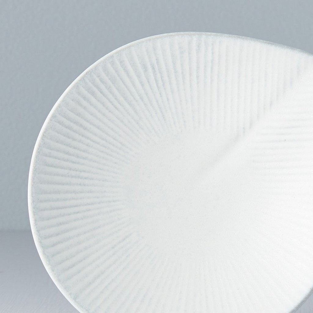- De fijne radiale textuur op het oppervlak voegt diepte toe aan het bord en onderstreept het handgemaakte karakter van het keramische vakmanschap.