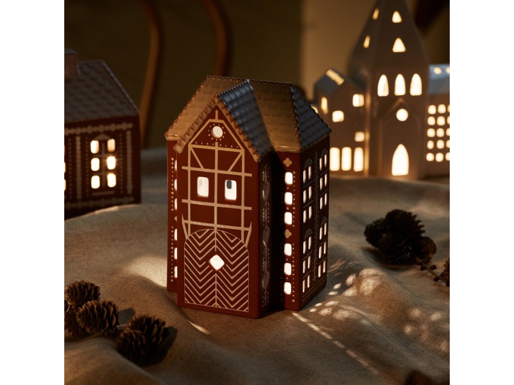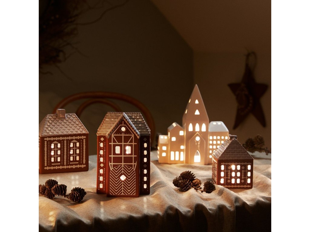 Theelichthouder GINGERBREAD LIGHTHOUSE 17 cm, bruin, aardewerk, Kähler