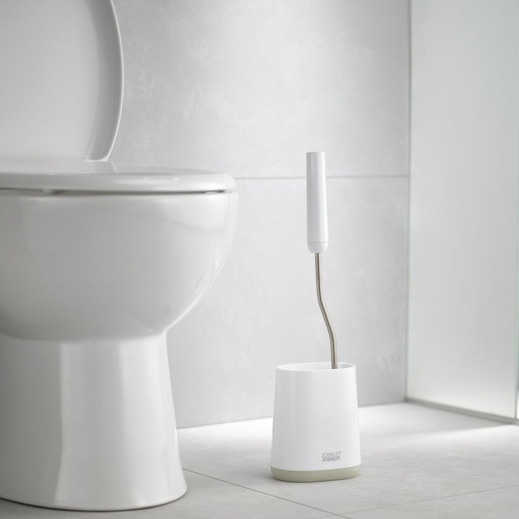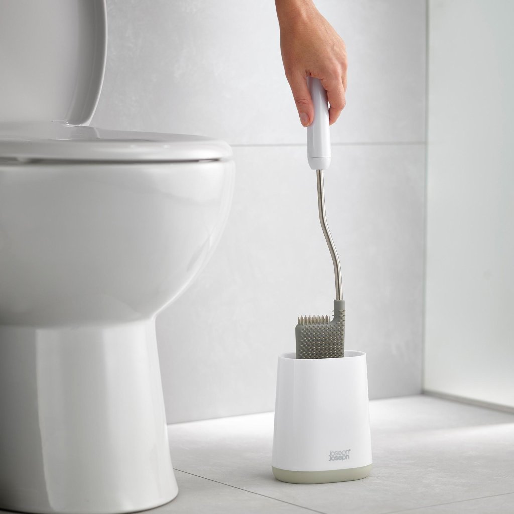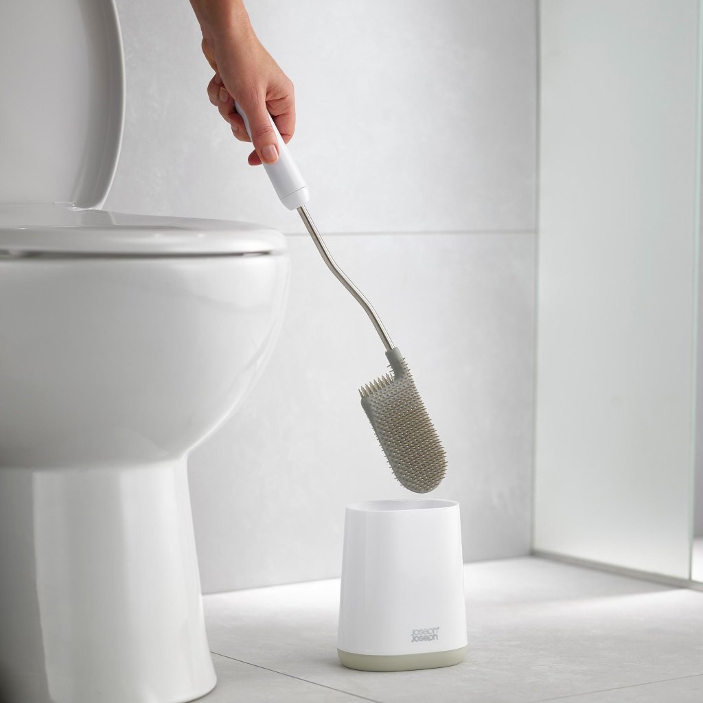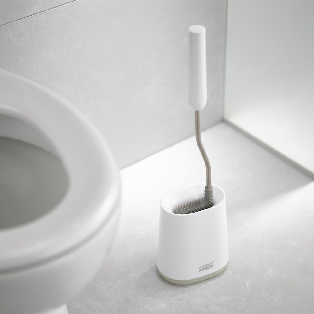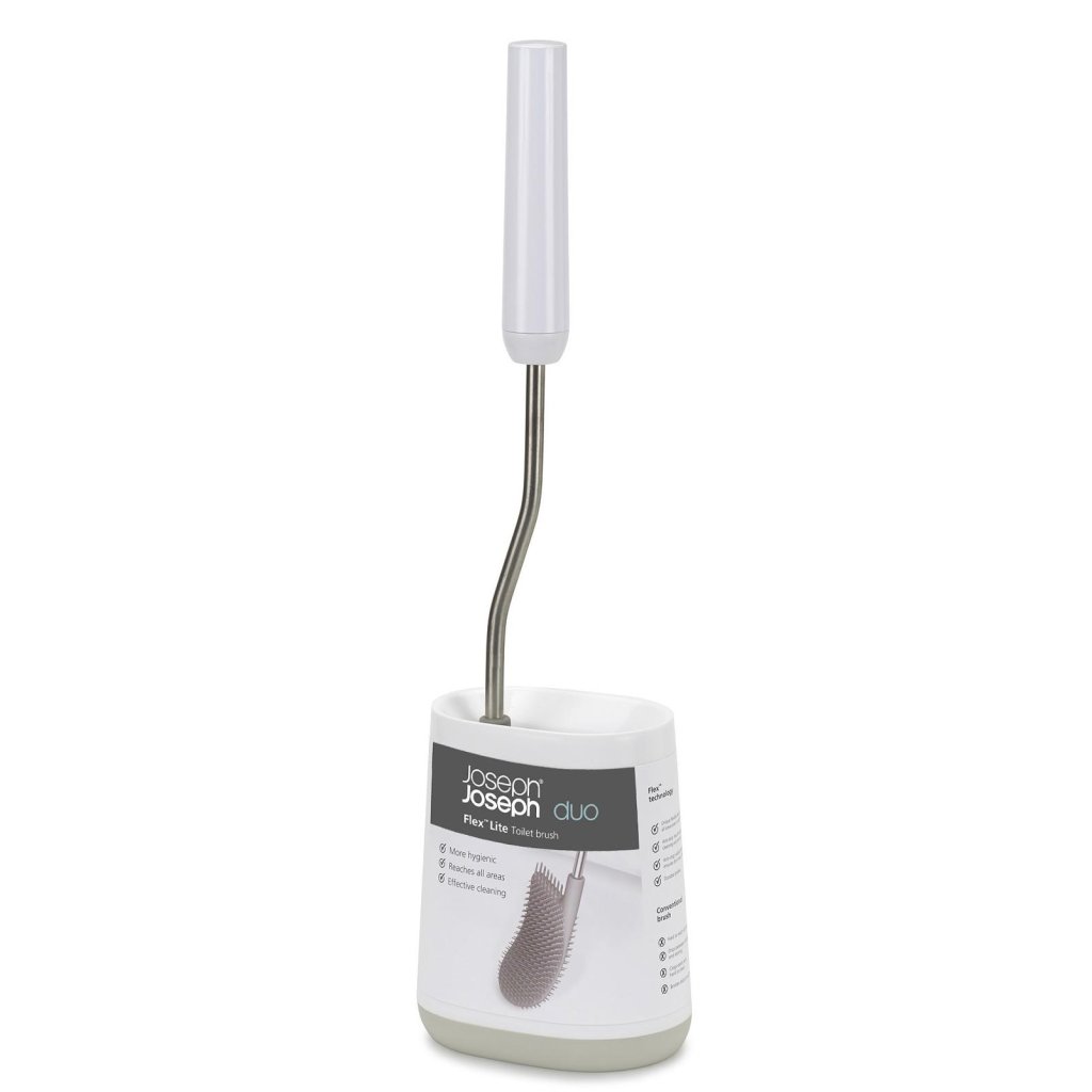 - toiletborstel Joseph Joseph DUO FLEX LITE met flexibele siliconen borstelkop biedt een hygiënische en effectieve oplossing voor grondige toiletreiniging zonder compromissen.