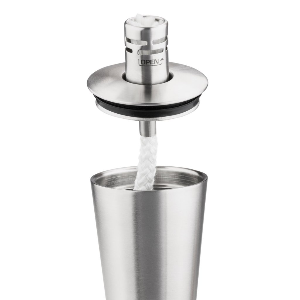 - U kunt tot 300 ml olie in de fakkel gieten, die 8 uur zal branden