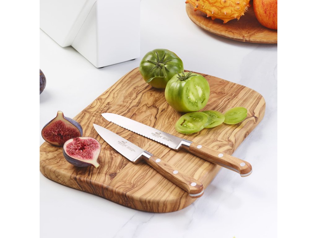 - het natuurlijke patroon van het olijfhout maakt van elk mes een originele en esthetische aanwinst voor de keuken