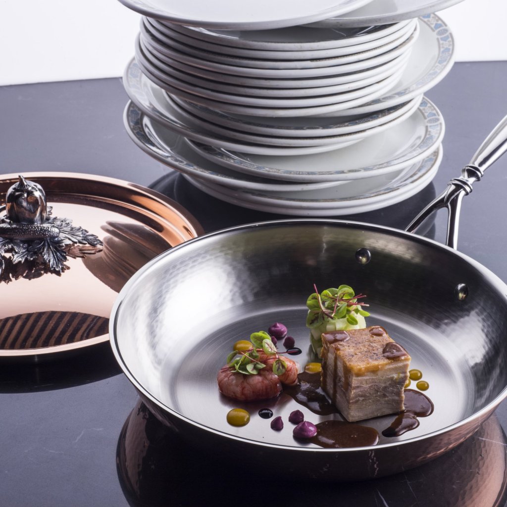 - absoluut uitzonderlijke, smeedkoperen universele koekenpan voor de meest veeleisende professionele en hobbykoks