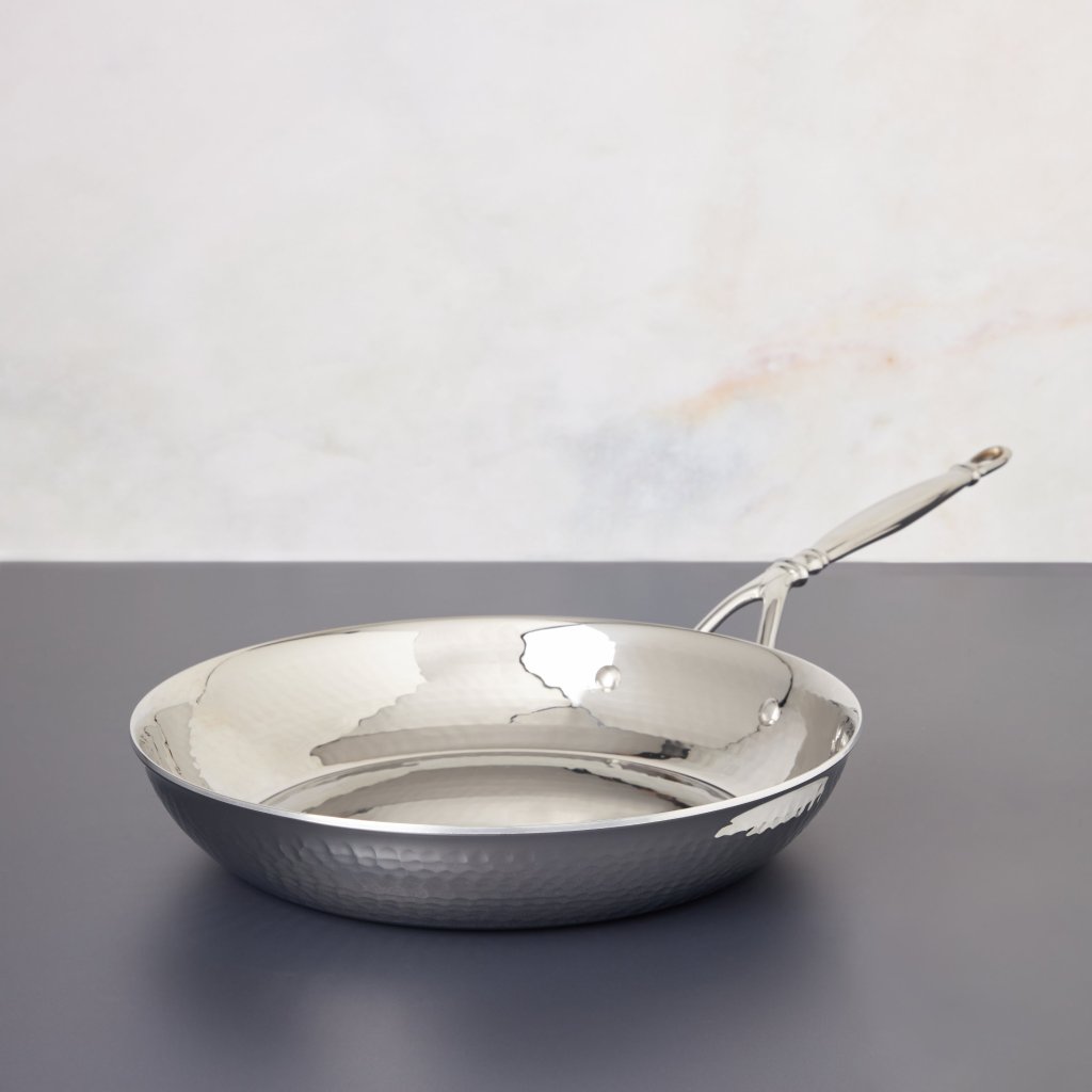 - luxe, gesmede, roestvrijstalen universele koekenpan voor de meest veeleisende professionele en hobbykoks