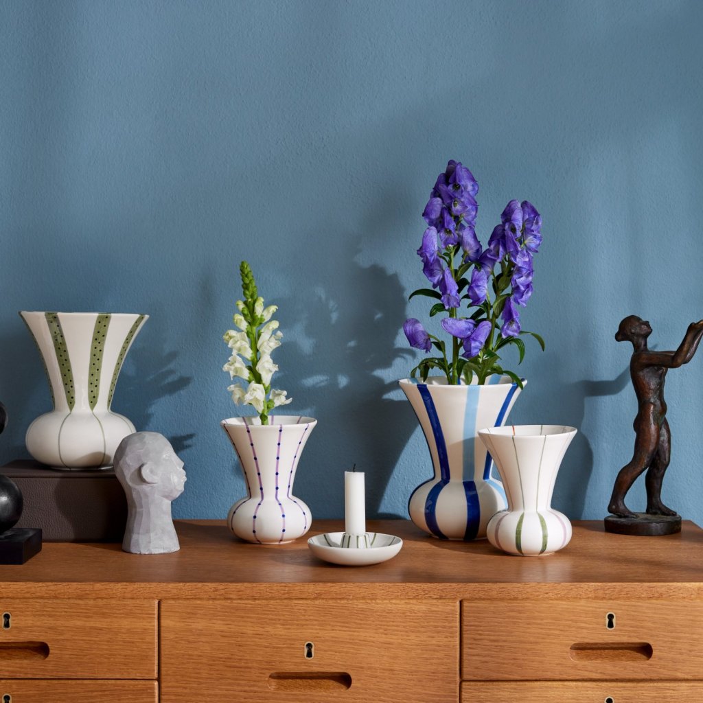 - ontwerp vaas SIGNATURE met een hoogte van 20 cm is een origineel keramisch stuk dat opvalt door handgeschilderde blauwe strepen
