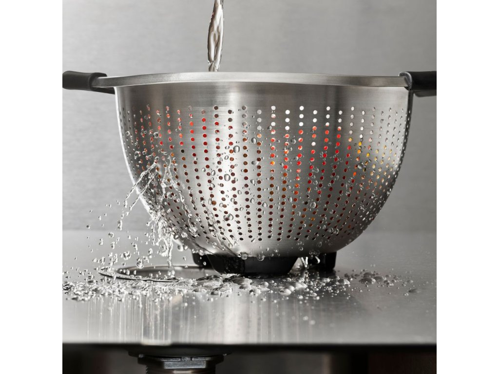 - gaten over de volledige hoogte laten water snel weglopen, zelfs bij grotere hoeveelheden voedsel