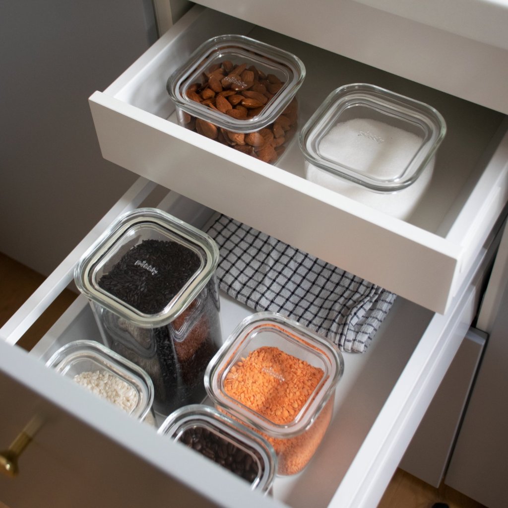 - 100% borosilicaat glazen pot met afsluitend vierkant deksel