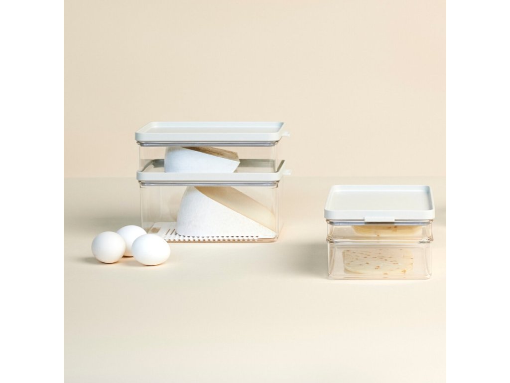 - compacte afmetingen en stapelbaarheid besparen ruimte in de koelkast en zorgen voor overzichtelijkheid in het koelkastcompartiment