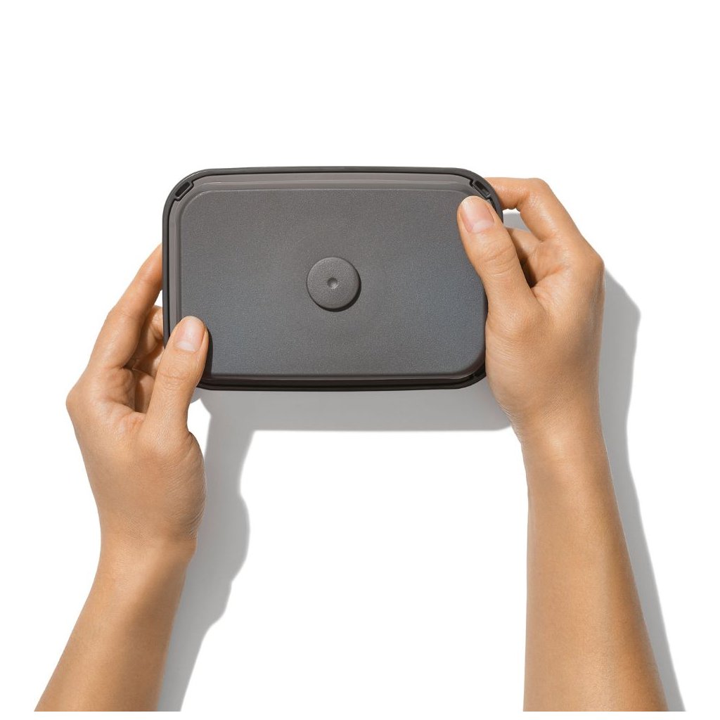 - optionele OXO-accessoires, zoals een maatbeker, kunnen aan de onderkant van het roestvrijstalen deksel worden geplaatst