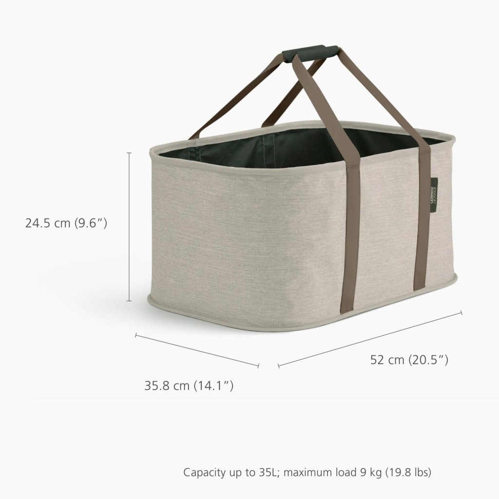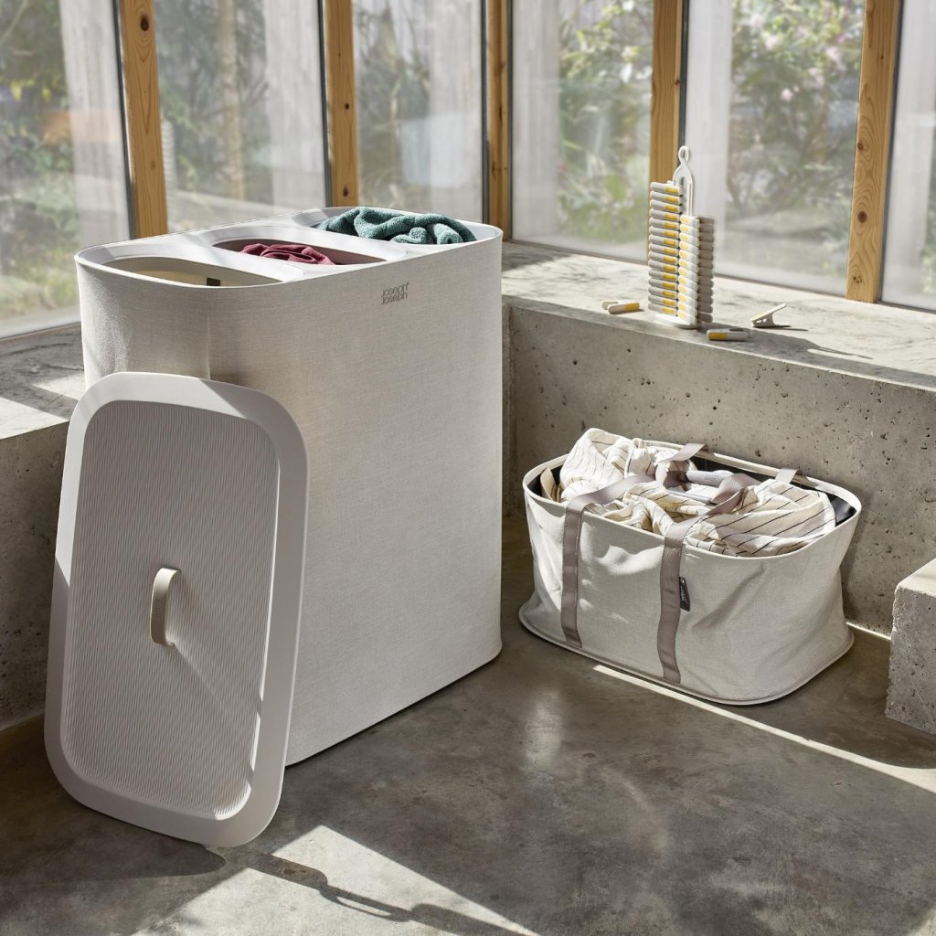 - De Waszak Joseph Joseph HOLD-ALL met een inhoud van 35 liter biedt een elegante en praktische oplossing voor het dagelijks vervoeren van wasgoed tussen de slaapkamer, badkamer en wasmachine.