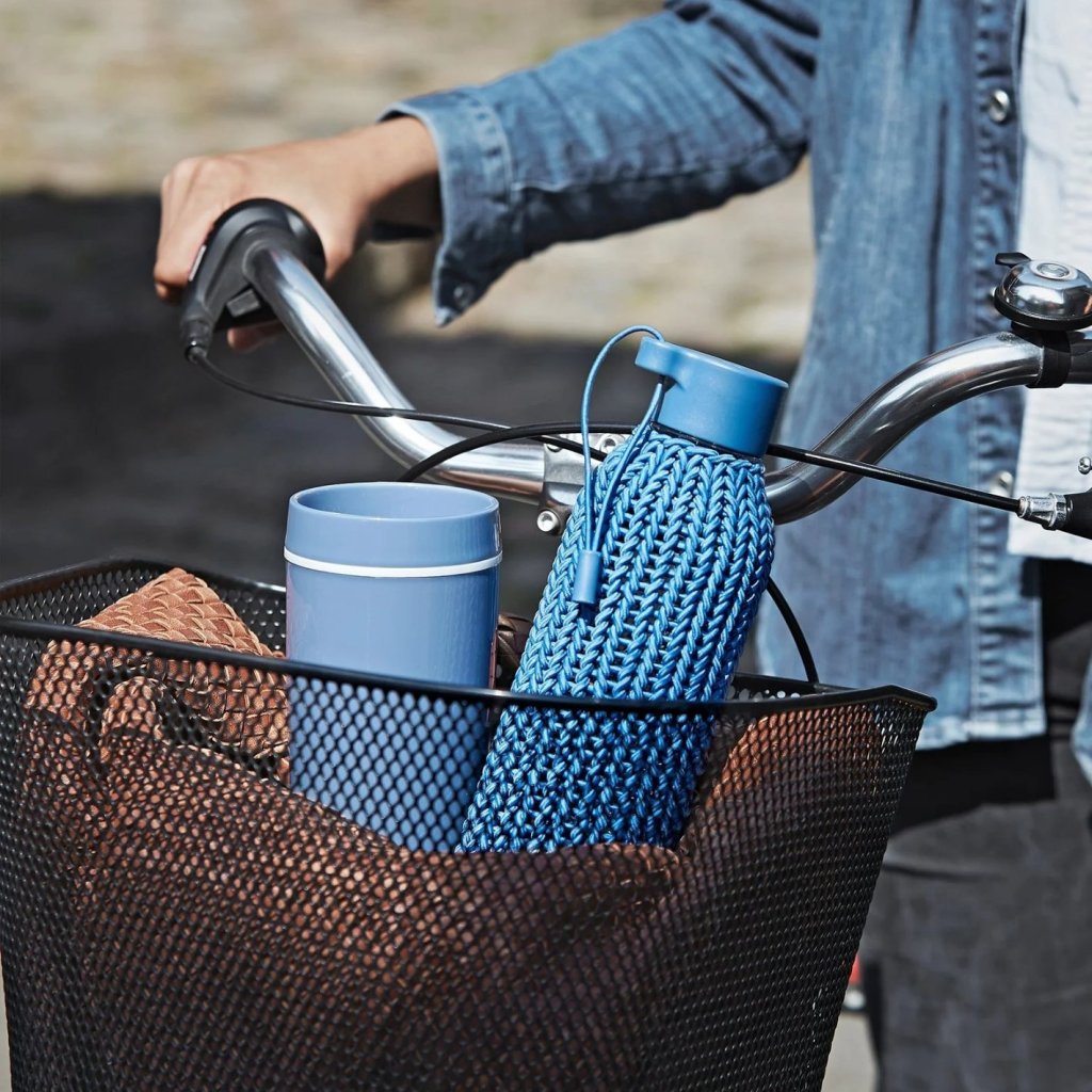 - de moderne look wordt aangevuld met een stijlvolle gebreide hoes, die zorgt voor een stevige grip en de fles beschermt tijdens stoten