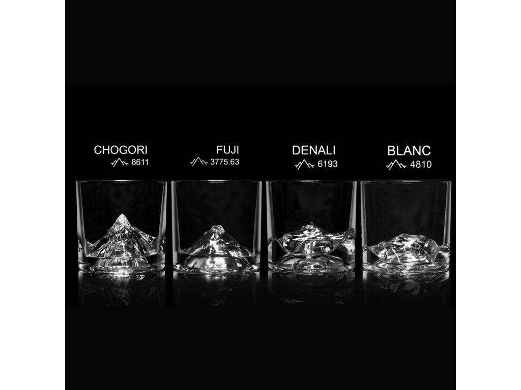 - 4 handgemaakte glazen: Mont Blanc, Denali, K2 en Fuji