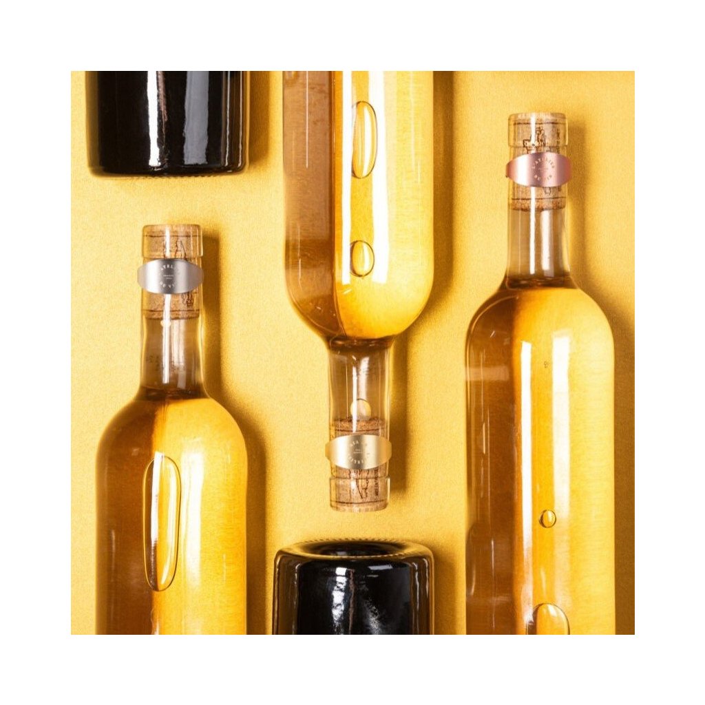 - het ontwerp van de ringen benadrukt de hals van de fles, terwijl het functionele gedeelte elegant verborgen is