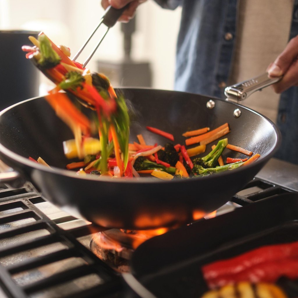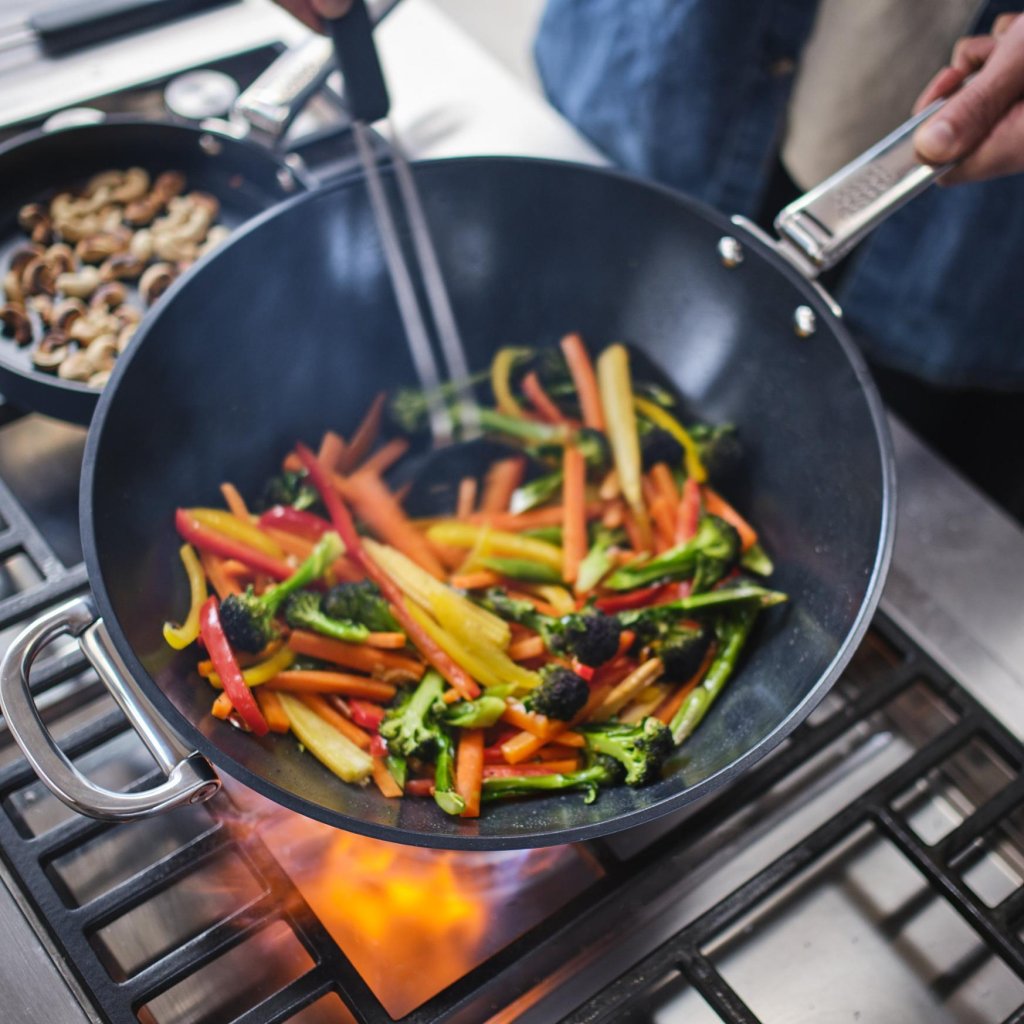 - De diameter van 32 cm biedt voldoende ruimte voor het bereiden van grotere porties stir-fry, gebakken rijst, noedels of groentegerechten.