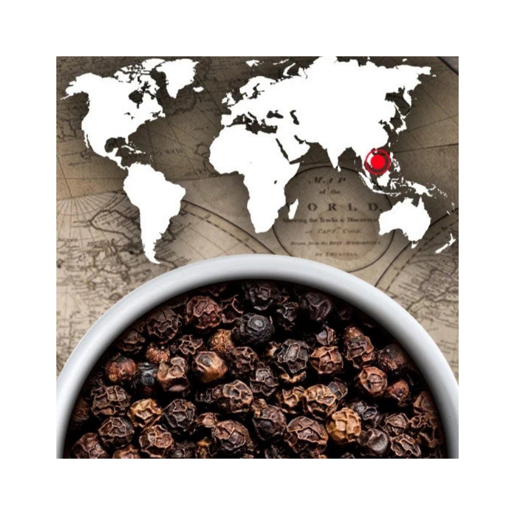 - zwarte peper uit Vietnam met intense kruidigheid en warme, houtachtige noten